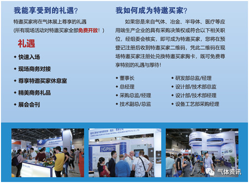 在這裏,您(nín)可以第一時間與心儀的氣體設備及相關(guān)產品的參展商麵對麵地(dì)溝通與(yǔ)交流、同時尊享我們為您(nín)提供(gòng)的特邀買家通道、商務配對服務、歡迎禮包、貴賓休息室等一係列個性化尊貴禮遇,及獲(huò)取最新的氣體行業發展資訊。我們誠邀您申請成為氣體展特(tè)邀買家,與來自全球的優質設備及相關供應商建立聯係,幫(bāng)助您更好的完成采購工作。