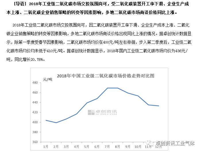 5.2 2018年中國工業級二(èr)氧化碳市場價格分析