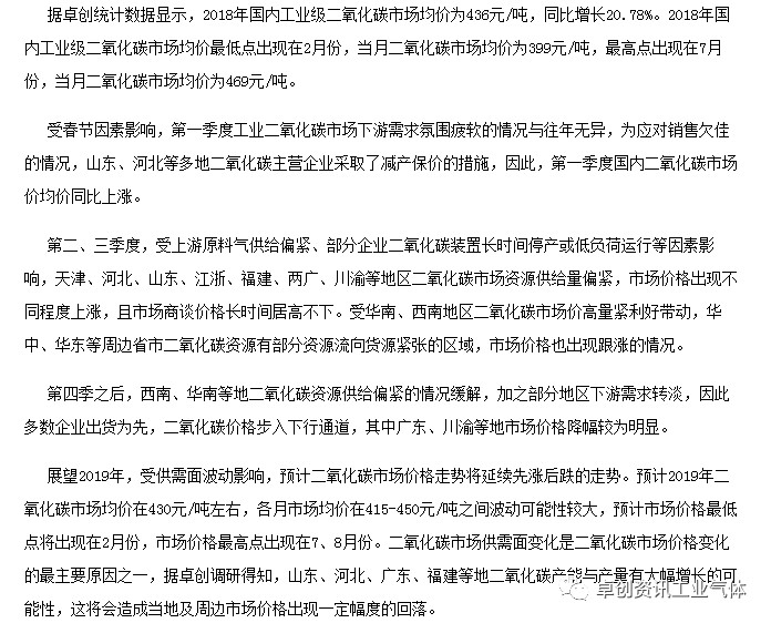6.3 2019年中國二(èr)氧化碳市場價格(gé)走勢預測