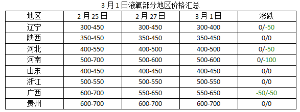 西南(nán)地區液氧區間震(zhèn)蕩,其貴州(zhōu)市場參考區間在600-700元(yuán)左右/噸,市場需求麵氛圍欠佳,下遊按需補貨為主,交投較(jiào)為乏力(lì)。四川地區液氧參考區間在650-700元左右/噸,後(hòu)期還需跟進下遊需求。
