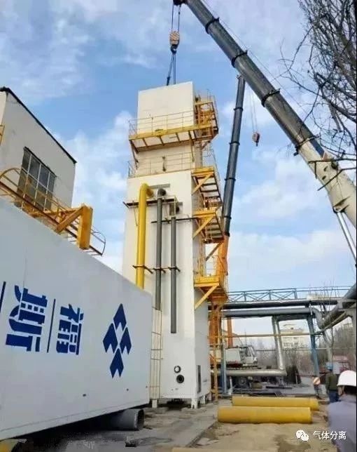 * 湖南常德(dé)300T液體空分項目現場冷箱正在吊裝就位。該項目於2018年7月成功簽訂(dìng),計劃於(yú)今年5月(yuè)底投產。
