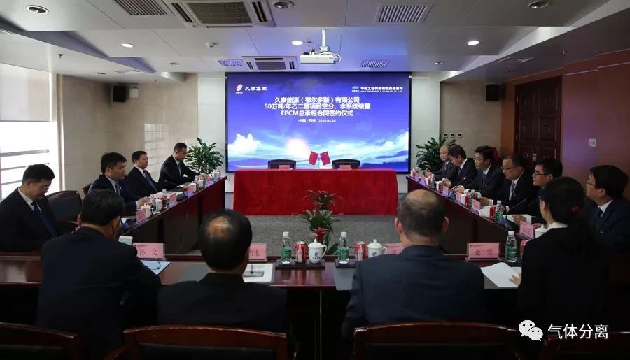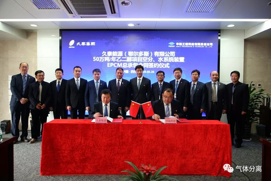 3月26日(rì),久泰能源(鄂爾多斯)有限公司50萬噸/年乙二醇項目空分、水係統裝置EPCM總(zǒng)承包合同簽約儀式在華陸工程科技有(yǒu)限責任公司舉行。
