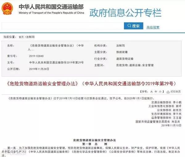 運輸危險品或者違禁品,一旦出現事故(gù)就不是小事,被有關部門查處也將會麵臨高額罰款(kuǎn)。11月28日,多部委聯合發布(bù)了《危險貨物道路運輸(shū)安全管理辦法(fǎ)》,該法(fǎ)規自2020年1月1日(rì)起執行。