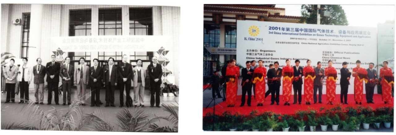 1999 年首(shǒu)屆展會(huì)開幕照片 2001 年(nián)第三屆展會開幕照(zhào)片, 當年展會的商標注冊成功