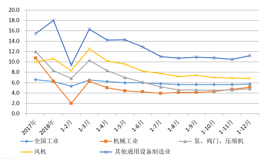 • 其它通用(yòng)機械較上年回落2.23個(gè)百分點。