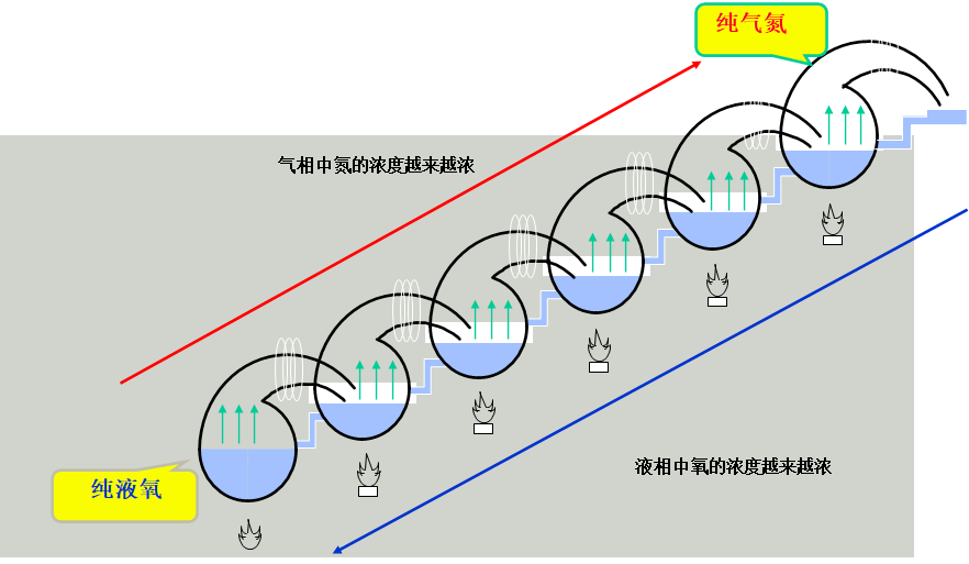 我國空分設備的生產規模已經從最早期(qī)隻能(néng)生產20m3/h(氧)的製氧機。發展到具有生產20000m3/h、30000m3/h、50000m3/h的(de)大型空分設備,再到(dào)60000m3/h、80000m3/h、100000m3/h及以上的特大型空分設備的能力。