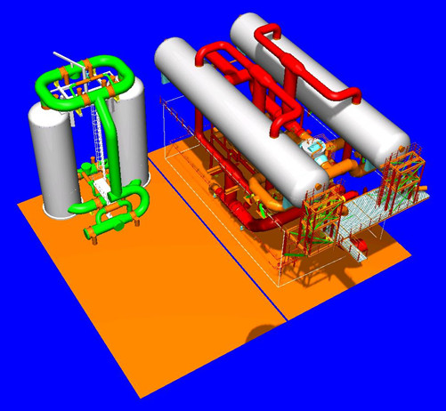 由空氣預(yù)冷係統(空冷係統)和分子篩純化(huà)係統(tǒng)(純化(huà)係統)組成。經壓縮後的原料空氣(qì)溫度較高,空氣預(yù)冷係統(tǒng)通過接觸式換熱降低空氣的溫度,同時可以洗滌其中的酸(suān)性物質等有害雜質。分子篩純化係統則進一步除去空(kōng)氣中的水分、二(èr)氧化碳、乙炔、丙烯、丙烷和(hé)氧化亞氮等對空分設備運行有害的物質。