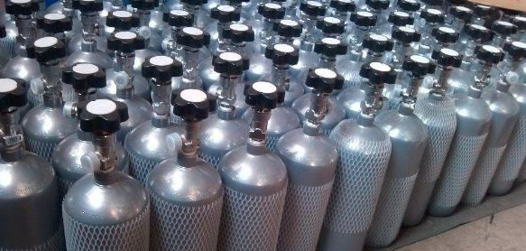此氣(qì)瓶是由鋁製的內筒和內筒外麵纏繞一定厚度的無堿(jiǎn)玻璃纖維構成的。鋁製內筒(tǒng)的作用是保證氣瓶的(de)氣密性。氣瓶的承壓(yā)強度依靠內筒外麵纏繞成一體的玻璃纖維殼壁(用環氧酚醛樹脂等作為黏(nián)結劑)。殼體(tǐ)纖維材料(liào)容易“老化”,所以使用壽(shòu)命一般不如鋼製氣瓶。