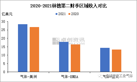 林德美洲地區(qū)收(shōu)入為28.4億美元,同比增長7%,占比總收入(rù)39.2%,同比增長主要是受各終端(duān)市(shì)場需(xū)求增長帶動,銷量增加4%,產品價格提升(shēng)3%;歐洲、中東(dōng)及非洲地區收入為17.99億美(měi)元,同比增加10%,占比總收入24.8%,業(yè)績增長(zhǎng)主要是受醫療健康領域需求支撐,銷量和定價(jià)有所(suǒ)提升;亞太地區收(shōu)入為14.36億美元,同比亦增長7%,其(qí)中受電子行業及新項目(mù)需求支撐,銷量增加11%,價格提升1%。