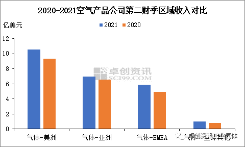 法液(yè)空:從各區域氣體服務收入來(lái)看,美洲地區收入為20.3億歐元,同比下降1.5%,主要由於2月份墨西(xī)哥沿岸的冬季風暴對大(dà)工業形成利空(kōng)影響,拉丁美洲地區則實現同比(bǐ)正增長;歐洲地區收入(rù)為17.97億歐元,同比增長4.5%,主要得益於工業(yè)活動的恢複,其中醫療保健行(háng)業仍表現強勁;亞太地區收入為11.5億歐(ōu)元,同比增長6.7%,所有行業均實現同比正增長,且中國地區漲(zhǎng)勢明(míng)顯,達12.8%;中東(dōng)和非洲地區收入為1.53億歐元,同比增長17.5%,其中大化(huà)工主要得益於沙特的管道需(xū)求增長,通用工業主要為印度及埃及(jí)的向好支撐。