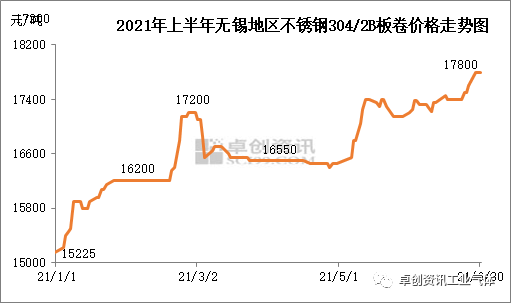 【導語】2021年上半年中國(guó)不鏽鋼市(shì)場呈現震蕩上漲態勢,價格重心不斷上移(yí),主要受期貨盤麵帶動和鋼廠積極(jí)控(kòng)量支撐。下半(bàn)年(nián)供需基本麵壓力或有上升預期,考慮到年中備倉及短期壓力暫不明顯,整體走勢先抑後揚的可(kě)能性大。1、上(shàng)半年價格(gé)走勢(shì)回顧 2021年上(shàng)半年(nián)中國不鏽鋼(gāng)市場呈現震蕩上漲態勢,價(jià)格重(chóng)心不斷上移(yí)。從點價格來看,截至6月30日無錫地區太鋼304冷(lěng)卷市價累計漲2650元/噸,低點在年(nián)初,高點在年中。從半年度均(jun1)價來看,2021年上半年均價在16690.78元/噸,環比2020年下半年均價上(shàng)漲12.58%,同比2020年上半年均價上漲18.91%。圖(tú)1 2021年上半年無錫地區不(bú)鏽鋼304/2B板卷價格走勢圖 不鏽鋼價格具體走勢來看,元旦過後終(zhōng)端(duān)補貨與期貨上漲及鋼(gāng)廠控量下,市場價格漲勢明顯(xiǎn),無錫地區太鋼304冷卷價格自15225元/噸快速拉漲至16200元(yuán)/噸。雖農(nóng)曆新年期間(jiān)交投幾近停滯(zhì)令漲勢(shì)中斷,但節日期間倫鎳盤中衝高,節後歸來市場庫存累積情況較往年明(míng)顯偏少,成本高位推動價格進一步攀高,市價進一(yī)步(bù)漲至17200元/噸的階段高位。由於終端節後複工進度(dù)不樂觀,且鎳鐵產高冰鎳消息衝擊市(shì)場,倫(lún)鎳盤中連續大跌(diē)拖累不鏽(xiù)鋼市價跟隨回(huí)落至16550元/噸附近。隨後開啟一個多月的穩價出貨階段,整個4月份市價調整有限,市場貨源消化明顯(xiǎn)。隨後期貨盤麵開啟寬幅震蕩格局(jú),並由此5月-6月期貨盤麵(miàn)連續衝高(gāo)回落對(duì)市場(chǎng)的帶動多於拖累,且鋼(gāng)廠適時進行檢修、轉產、控量操作(zuò),價格重心逐步上移至17800元/噸階(jiē)段高點。整體來看期貨盤麵影響與鋼廠控量是上半年(nián)發揮主要影(yǐng)響作用的因素。圖2 2020-2021年不鏽鋼304冷卷價格走勢圖 根據目前市(shì)場所表現出的情況來看,2021年下半年中國不鏽鋼市場或(huò)呈現漲後回落態勢(shì),近期行情存(cún)支撐,但(dàn)承壓亦不可忽視。當前不鏽鋼市價不斷拉漲,市場(chǎng)畏高情(qíng)緒上升,而7月份(fèn)傳統消費淡季(jì)預期仍存(cún),供需(xū)基本麵承壓或將上升。但考慮到鋼廠指導價格繼續拉漲,且部分終端(duān)年中備倉,或增加市場支撐力度。另外8、9、10月份或在 “金九銀十”傳(chuán)統旺季支撐下,行情上漲空間有所放大,但高(gāo)位價格或(huò)一定程度限製需求放量空間。隨後隨著需求端再次轉弱,市場承壓或上升,且年內鋼廠整體產量居高,1-5月份產量同比增加了(le)30.73%,供應(yīng)端壓力(lì)或有逐漸增加預期。另外進入四季度市場(chǎng)整體銷售壓力或將上升(shēng),預計年內總需求量(liàng)同比僅增加16.83%,後市需求端支撐或有小幅偏弱可能。因此(cǐ)卓創預計下半(bàn)年行情(qíng)或先揚後抑,但整體價格重心仍將維持偏高位態勢。304/2B卷價格運行區間或在16500-18500元(yuán)/噸。