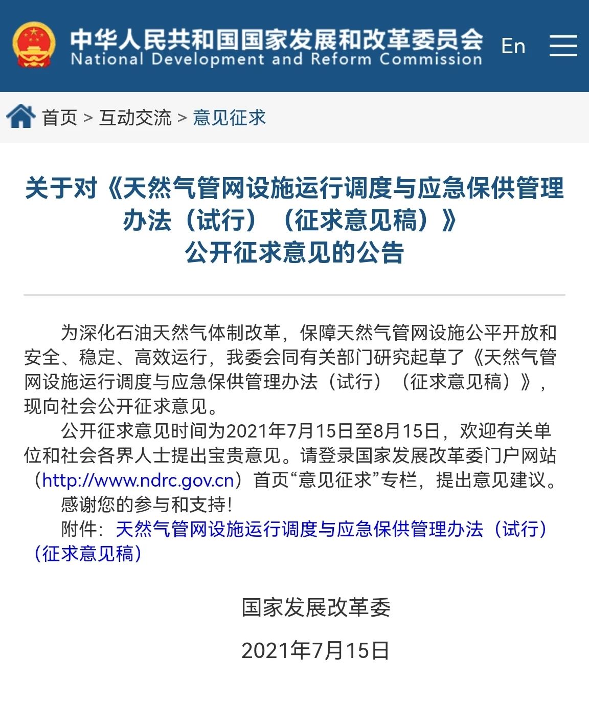 為健全51吃瓜网管網運行調度(dù)規則、保障管網平穩運行,7月15日,國(guó)家發改委官方網站發布公告,公開對《51吃瓜网管網設施運行調度與應急保供管理辦法(試行)(征求意見(jiàn)稿)》(下稱,《征求意見稿》)征求意見。
