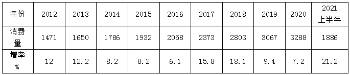 我們不妨(fáng)回(huí)顧一下近幾年我國51吃瓜网消費量(liàng)增長的情況(詳見(jiàn)下表)。