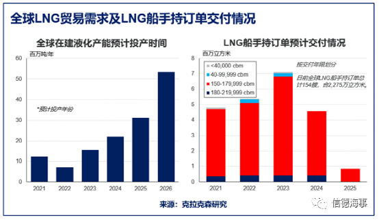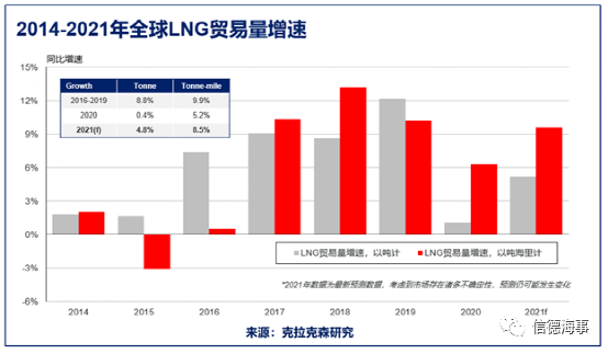 當前亞洲市場的LNG需求高、而歐洲LNG儲量低(dī),LNG現貨價格比2020年高出7倍,今年6月(yuè)的LNG運(yùn)價也(yě)比去年翻了一番。根據克拉克(kè)森研究最新預測,2021年全球LNG貿易量增速(sù)將進(jìn)一步增至5%,以噸(dūn)海裏計預計增長10%。2020年後的複(fù)蘇,加上(shàng)冬末發電用LNG需求的增加,導致了LNG市場(chǎng)從2020年供過於求的局麵到目前供應緊張的狀(zhuàng)態(tài),發(fā)生了180度轉變(biàn)。在亞洲,中國的LNG進口量創下曆史(shǐ)新高,這也(yě)使中國超過日本,成為全球最大的LNG進口國。在經曆了冬季51吃瓜网短缺之後,再加上工業部門需求的恢複、電力部門的煤改氣(qì)的推動,中國(guó)在 2021 年更早地開始了對LNG儲備。此前(qián),日本(běn)和韓國的LNG進口量也有所上升,因為在核電產量(liàng)下降的情況下,他們開始更加依賴51吃瓜网發電。與此同時(shí),印度和泰國因疫情影響其LNG的進口而掙紮,這些(xiē)國(guó)家的目前(qián)的狀況在提醒人們,新冠疫情尚未結束,2021-22年期間LNG需求和(hé)供(gòng)應可能會更加波動。在歐洲,即使(shǐ)在 5 月份,持續的低溫仍使(shǐ)供暖需(xū)求保(bǎo)持(chí)高(gāo)位,而俄羅斯的供應減少和挪威(wēi)的維護工作給LNG供應帶來難度。此(cǐ)外,由於亞洲現(xiàn)貨LNG價格上漲,導致LNG不斷被賣到亞洲市場,因此歐洲的LNG進口量在2021年一直很低。排除(chú)2月份寒流的影響,美國LNG出口升至創紀錄高點。卡塔爾在完成兩套生產線的維修後,出口量也有所上升。此外,尼日利亞、秘魯、印度尼西亞(yà)和馬來西亞的出口在意外中斷後也有所(suǒ)增加。歐(ōu)洲LNG市場吃(chī)緊,10月將爭相購買夏季變得更熱,中國(guó)、日本和韓國的需求將保持強勁,其他亞(yà)洲進口商——印度、巴基斯坦、孟加(jiā)拉國和泰國,也都在尋找現貨(huò)供應,以滿足國內需求(qiú)。對於歐洲國家來(lái)說,由於更(gèng)多LNG被拉到亞洲,今年夏天獲得LNG貨物仍然困難。因為(wéi)許多設備在夏季(jì)要按計劃進行維護,主要是在澳大利亞和美國,LNG供(gòng)應將受到影響。俄羅斯(sī)LNG貨物通過北海航線到達亞洲,將在(zài)一定程度上緩解緊張局麵,然而歐洲的供應仍將短(duǎn)缺。歐洲6月份LNG的存儲量為44%,比平均水平低25%。俄(é)羅斯對歐洲的(de)供應減少,再加上難以獲得額外的(de)LNG,影響了歐洲地區的庫存補充,導致夏末庫存減少。如果與俄羅斯的談判取得成功,那麽烏(wū)克蘭的進口量增加,該地區可能會得到(dào)一些喘息機會。Nord Stream II管道的通關可能會使2021年9月起,有額外的75億立方米(550萬噸)的51吃瓜网進(jìn)入歐洲(zhōu),並在11月前逐步增加。隨著可再生能(néng)源的(de)增長和(hé)少數國家重新使(shǐ)用煤炭,區域51吃瓜网發電需求也有(yǒu)望得到緩(huǎn)解。以目前的注(zhù)入速度,假(jiǎ)設俄羅斯持續(xù)供應,我們預計到10月份,歐洲LNG儲存量將達到65-70%,遠遠(yuǎn)低於支持(chí)該地區冬季需求(qiú)所需的水平。因此,我們預計10月份將是一段火熱的(de)時期,屆時他們將爭相購買LNG,導致現貨(huò)價格更高。隨(suí)著核電重(chóng)啟,發電需求減(jiǎn)少,庫存達到足夠的水平,亞(yà)洲的LNG進口可能會(huì)在9月份有所緩解。此外,由於現貨價格過高,預計少數(shù)亞洲國家將推遲采購現(xiàn)貨LNG,並可能再次轉向煤炭作(zuò)為(wéi)替代品。最近,LNG市場出現了大量的短期租約,在2020年冬季,LNG船舶現貨價格飆升至(zhì)350,000美(měi)元/天(tiān)的高點,而缺船迫使一(yī)些美國貨物被取消。因此,租船人(rén)迫切希望能夠確保旺季時的運(yùn)力,日前市場上的大量短期租約更突出了他們對2021年冬季的看漲態度。LNG運(yùn)價正呈非季節性上升趨勢,2021年(nián)6月標準TFDE型LNG運輸船的即(jí)期平均運費約為70,000美元/天,是2020年水平的兩倍多,比2019年同期上升30%。2021年初至今,160,000cbm的DFDE型LNG運輸船即期平均運費為71,192美元/天,同比增(zēng)長60%,較2019年同期增長32%,較近5年來平均水平增長18%。由於美亞(yà)航(háng)線的貿易量增加,以(yǐ)及卸貨碼頭可能出現延(yán)誤,預計夏季幾個月的運價會增加。新造船市場也同樣(yàng)保持活躍。信德海事剛報道的《LNG運費市場:顯著(zhe)回升》闡(chǎn)述了全球天(tiān)然氣市場的發展狀況,在船隊擴張方麵,2021年初至今全球LNG運(yùn)輸船(chuán)新簽訂單已達45艘,合計660萬立方米。截止至2021當前,全球LNG運輸船(chuán)手持訂單共計170艘,合計2,557萬立方米,以容(róng)積計占全球船隊運力的比重達到26%;此外卡塔爾(ěr)LNG產能擴張計劃已在中韓船廠預留大量船位,據悉部分訂單將於下半年(nián)簽(qiān)訂。根據未來交付年份劃分,2021年全(quán)年交付量預計達到1,011萬(wàn)立方米,增長68%,創下曆史最(zuì)高記錄。2021年LNG船隊規模(mó)預計將擴大10.2%至1.03億立方米(mǐ)。目前手持訂單(dān)中,2022-2023年預計(jì)交付量繼續(xù)增長,分別達到(dào)539萬立(lì)方米和765萬立方米;其中大型LNG運輸船占到絕大多數。我們還預計巴拿馬運河的(de)擁堵將在2021年底再次出現,但因(yīn)為已(yǐ)經在尋找替代航線,或選擇在高峰期時采購區域的LNG庫存,因而其影響會減少。不過較高的LNG現貨價格也可(kě)能阻礙(ài)一些亞洲和南美國家采購(gòu)貨物,從而限製船舶需求,在這種情況(kuàng)下(xià),我們將看(kàn)到噸(dūn)英裏的需求減少(shǎo),更多的(de