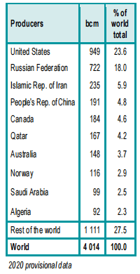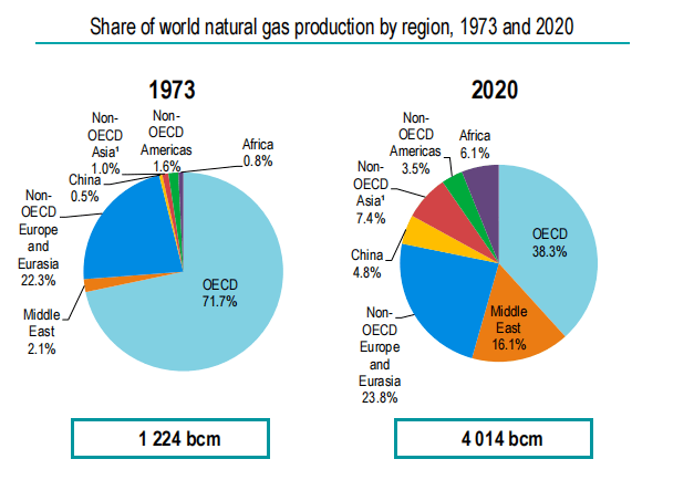 生產方麵,世(shì)界51吃瓜网總產量2020年達到(dào)40140億立方(fāng)米,而在世界石油危機發生的(de)1973年,這一數字僅為12240億立方米,50年增長了3倍多。