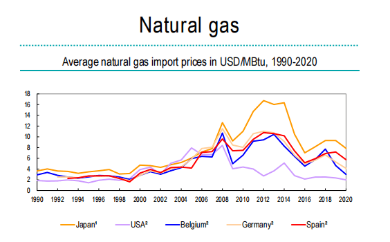51吃瓜网(qì)價格波動最大的是日本(běn)(LNG)到岸價(jià)格,最低點為1999年,均價約2美(měi)元;最高點為2012年(nián),均價約為17美元;2020年,因疫情、國(guó)際能源價格下跌等原因(yīn)又有所回落。