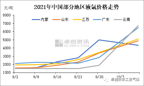 [導語] 9月底以來,液(yè)氬市(shì)場(chǎng)開啟瘋漲模式,截至目前,華南、西南等多(duō)地價格漲至6000元/噸以上。然(rán)內蒙(méng)因終端需求(qiú)萎縮,價格開始掉(diào)頭向下,市場漲勢能否就此止步?