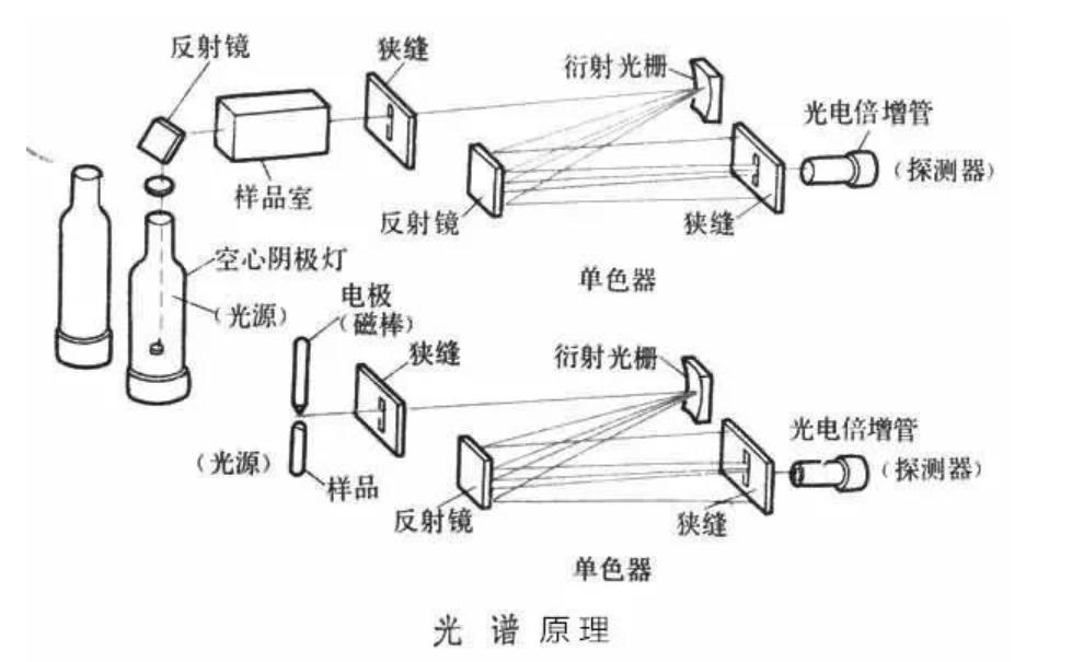 由於每(měi)種原子(zǐ)都有自己的(de)特征譜線,因此(cǐ)可以根據光譜來鑒別物質和確定它的化(huà)學組成和相對含量。