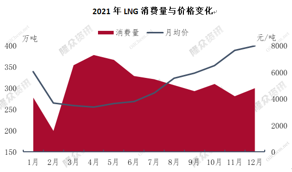 2021年LNG消費量與價格變化