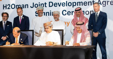 三家領先的能源公(gōng)司今天簽署了一項聯合(hé)開發協議(JDA),該協議將使在阿曼投資數十億(yì)美元建設一個“世界規模”的綠色氫燃料氨生產設施成為可能。 該協議(yì)於5月26日宣布,是在去年簽署諒解備忘錄之後(hòu)達成的(de)。