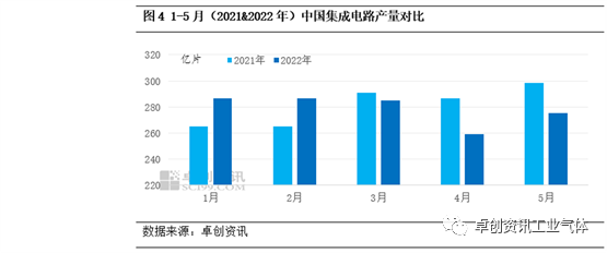 因液氮在電子行業中的應用較為廣泛,下麵我們通過集成(chéng)電路產量(liàng)變化來看下上半年電子行業的發展。據卓創資訊數據監測,2022年1-5月中國集成(chéng)電路產量(liàng)達到1392億塊(kuài),較2021年同期減少0.98%。從分月數據可以看出,1-2月同期對(duì)比均有增加,市(shì)場表(biǎo)現尚可(kě)。自3月(yuè)份開(kāi)始,受(shòu)多地管控影響,上下(xià)遊開工不足(zú),抑製集成電路開工水(shuǐ)平,2022年3-5月集成電路(lù)產量較去年同期減少6.52%。2022年上半年電子行業對液氮市場需求較去年有(yǒu)所減弱。