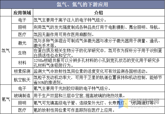 氙氣氪氣的下遊應用領域廣泛,在現代工業體係中有著重要地位。氙氣和氪氣在電子、醫療器械、氣體激光器與等離子流等工業技術領(lǐng)域有著極其廣泛的應用。在電子領域,氙氣是離子注入生產階段使用電子特氣的重要組成成分,而氪氣則(zé)是光刻(kè)膠印刷生產(chǎn)階段使(shǐ)用電子特氣的重要組成成分。