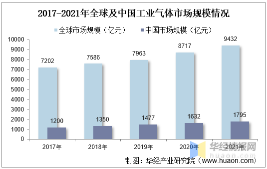 2017-2021年全球及中國工業氣體(tǐ)市場規模情(qíng)況