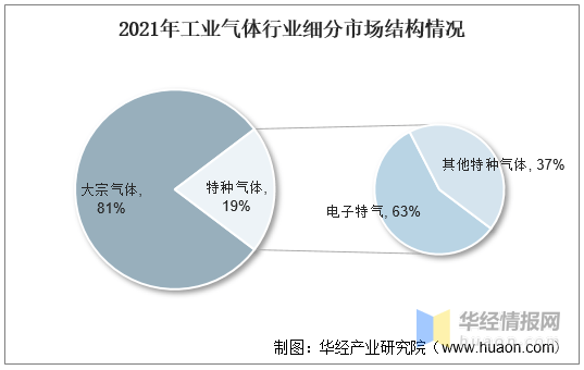 從(cóng)細分市場結構來(lái)看,2021年特種氣(qì)體需(xū)求占比僅19%,電(diàn)子特氣占據特種氣體市場的主要份額,隨著下遊新興產業加速發展,預計以電子特氣為(wéi)主的特種氣體占比有(yǒu)望提升至2025年的25%。