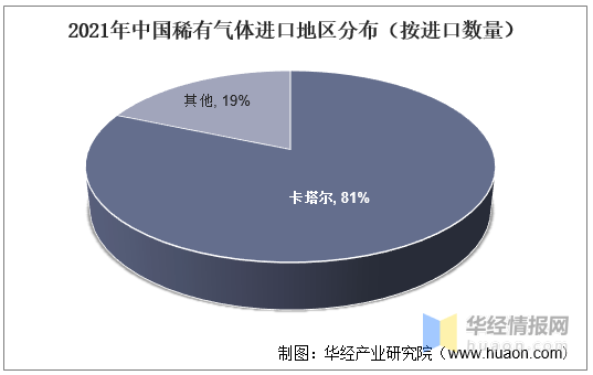從進口地區分布情況來看,我國稀有氣體主要進口國家為卡塔爾,進口數量占比81%。