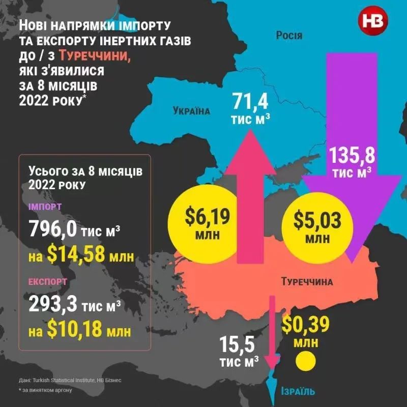但根據土耳其統計研究所(Turkstat)的數據(jù),土耳其今(jīn)年大幅增加了稀有和(hé)技術氣體的進口和(hé)出口。自4月以來,定期從俄(é)羅斯運往烏克蘭。5月開始向以色列出口。盡管在過去的(de)兩年(nián)裏沒有這樣的交付(fù)。運往伊朗和伊拉克的貨物大幅增加。這是俄羅斯通過土耳其向世界其他國家運輸原料的進(jìn)一步證據。