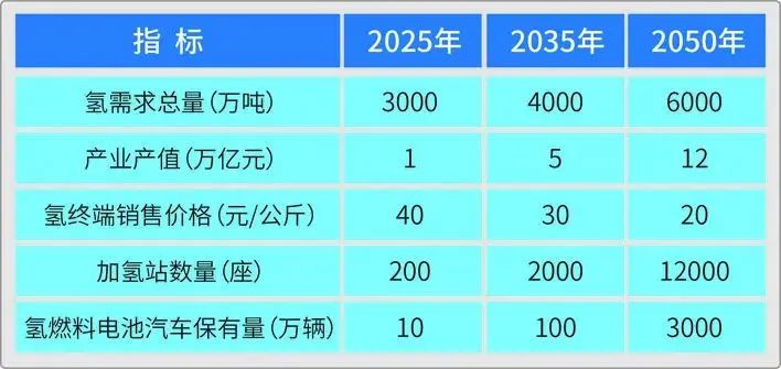 我國氫能產業未來發展目標