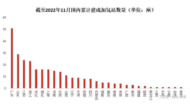 從建站年份來看,2021年國內建成(chéng)加氫站122座,為(wéi)曆(lì)年來建站數量最多的年份,主要原因是受到去年的中石化發布“百站計劃”、示範(fàn)城市群政(zhèng)策即將(jiāng)落(luò)地、北京冬奧會氫能應用等利好因素影響,建站速度提升效果明顯。2022年開年至11月,國內建成加氫(qīng)站數量為40座(zuò),受公共安全事件影響,建站(zhàn)速(sù)度較去年明顯放緩,預計2022年建站總數超越2021年的(de)可能性(xìng)不大。