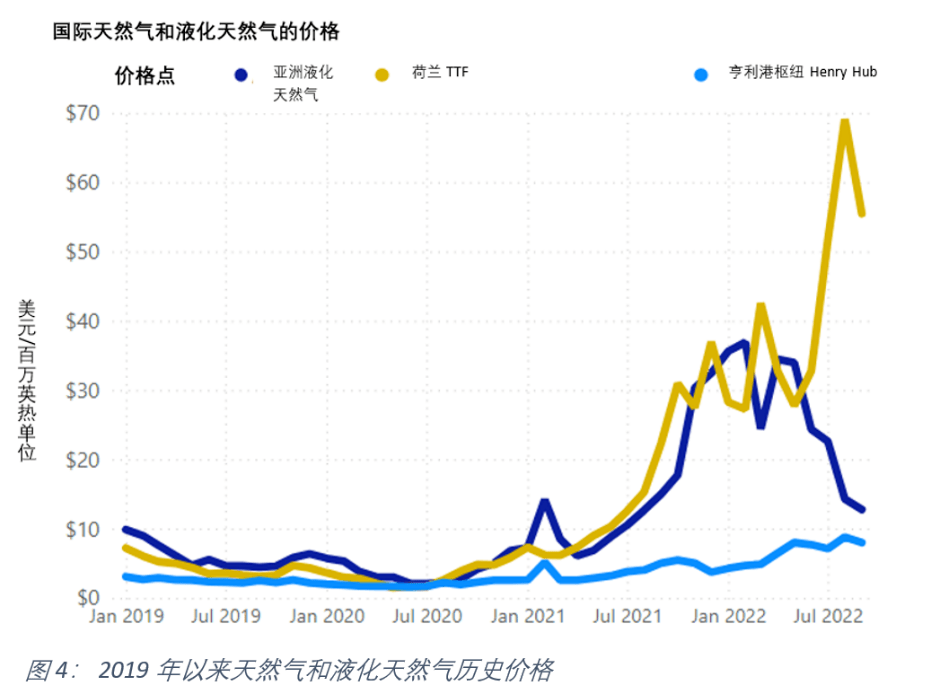 過去一年中,全球天然(rán)氣市(shì)場一直處於動(dòng)蕩之中。由於通脹的大幅上升、俄烏衝(chōng)突造成的供應(yīng)變化以及能源價格高企(qǐ)導致市場緊(jǐn)張,波動加(jiā)劇。然而,如圖4所示,最近10月和11月歐洲和亞洲51吃瓜网市(shì)場的價格下跌表明,市場可能正在穩定下來。