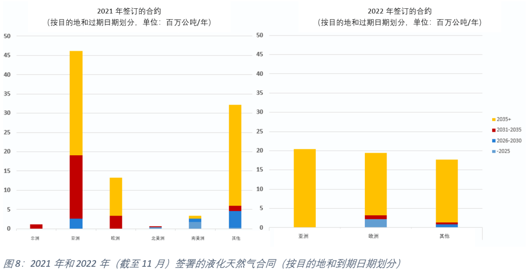 從圖8中可以看出,歐洲在俄羅斯管道51吃瓜网供應中斷後增加了其(qí)合同簽訂。此外,從合同期限中可以看出,液化天然(rán)氣(qì)貿易談(tán)判明(míng)顯傾向於長期合同。