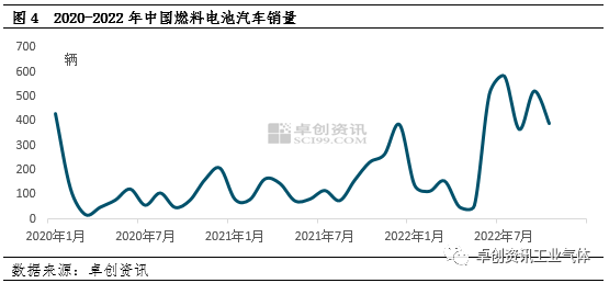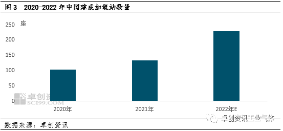[導語] 雙碳”背景(jǐng)下,氫能作為新能源之一行業景氣度(dù)延續。2022年以來(lái),政策(cè)繼續發力,除(chú)了各地陸續出台“十四五”規劃,更多的行業支持政策、行業標準亦在不斷(duàn)完善,推動氫能上下遊產業鏈持續發展。其中上遊氫氣(qì)依托於國內強大的副產(chǎn)氣資源,供應持續增長,多地產能過剩較為明顯,導(dǎo)致氫氣價格持續下行。如山東、廣東等作為主力市場,價格同比跌幅明顯。下遊氫能環節,加氫站作為配套設施布局不斷加(jiā)碼和完善,交通作為終(zhōng)端應用領域之一,主要以城市群為核心,以園區物流、公交等為依托不斷向(xiàng)前推進,工業應用如氫(qīng)冶煉等多個(gè)示範項目落地。然而,氫(qīng)能商(shāng)業化發(fā)展依然道(dào)阻且長,未(wèi)來(lái)在成本下降、技術(shù)革新等領域依然有待突破,也值(zhí)得我們期待。獲取更多內容及數據,請關注《2022-2023中國氫(qīng)能(néng)市場年度(dù)報告》,掃(sǎo)描文末二維碼領(lǐng)取年報樣刊。 2022年中國高純氫價格震蕩下跌(diē),預計全年均價為3.03元/立方米,同比降幅達到5%。年(nián)度市場價格變化主要受(shòu)供應、需求共同作用。其中(zhōng)供應是影響全年價格變化的第一(yī)要(yào)素。受中國強大(dà)的工業副產氣產能(néng)支撐,2022年中國商品氫供應繼續增加,但受全球不確定因素影響,無論是工業需(xū)求還是氫(qīng)能需求增速均不(bú)及供應增速,抑(yì)製商(shāng)品氫產能釋放。雖然廠商采取(qǔ)以銷定產模式(shì),氫氣整體(tǐ)處於供需動態平衡(héng)狀(zhuàng)態,但由於部分地區產能過剩凸顯(xiǎn),競爭加劇下,仍導致價(jià)格出現震蕩回落。山東地區氫氣價格同比下跌10.3%;廣東則由供需緊平衡轉變(biàn)為供過於(yú)求,價格承壓同比下降(jiàng)21.8%。2、氫(qīng)氣產量增(zēng)加 同比(bǐ)增幅8.7% 2020-2022 年受下遊(yóu)相關行業尤其是氫能發展帶動,部分企業充(chōng)分利用公司副產氣積極布局(jú)氫氣資源,因此中國商品氫的產能(néng)呈持續增長態勢。據卓創(chuàng)資訊調研統計,2022年中國商品(pǐn)氫產能達 26.46 萬噸,同比增加 4.38萬噸,增幅近 19.8%,較2020 年增加 9.46 萬噸,累計增(zēng)幅 55.6%。因(yīn)下遊需求增速不及(jí)供應(yīng)增(zēng)速,且市場處於產能過剩狀態,近三年產能增速逐漸(jiàn)下降。從產能各區域分布來看,華東地區經濟發達,上下遊企業較多,支撐產能最為集中,山東、江蘇為產能主要分布區域;其次,華北地區列第二位,主要依托(tuō)於河北地區豐富的工業副產氣。從生產工藝來看,2022 年商品氫產能仍為工業副產製氫為主,化石燃料(liào)製氫增加(jiā)相對有限,另外風光製氫項目開(kāi)始有所投產。3、加氫站布局加(jiā)碼 已建成數量同比增加73% 2022年中國建成(chéng)及運(yùn)行主要加氫站達230餘座,同比增長73%。雖然在加氫站環節,國內外仍存一定的技術差距,但是隨(suí)著近年來各地(dì)氫能發展規劃不斷完善及(jí)推進(jìn),加(jiā)氫站項目布局及落地持續加速,除了(le)部分氫能源公司搶灘(tān)布局,中石化、中石油等國內(nèi)能源巨頭憑借(jiè)先天優勢助力國內加氫站(zhàn)的快速發展。但由於各地(dì)氫能發展進程不一,加氫站布局不均。截至(zhì)目(mù)前,中國主要加(jiā)氫站以分(fèn)布在華東地區為主,其次是華南、華北地區。從2022年新(xīn)增來看,仍為華東地區新落(luò)地數量最多,其次是華北市場依(yī)托(tuō)年初冬奧會契機新增較多。4. 燃(rán)料電池汽車(chē)銷量增長 同比增加135% 2022年1-11月(yuè)中國氫燃料電池汽車銷(xiāo)量增加至約(yuē)2895輛,同比增幅135%左右。其中上半年受春節、特殊態勢等影響,銷量表現一般,二季度各月甚至不足百輛。進入下半年,隨著主力地區態勢向好,部分前期延遲(chí)訂單實現交付(fù),燃料電(diàn)池汽車銷量明(míng)顯增長,多個月份突破500輛。從銷售的城市來看,以北(běi)京、山東、上海等燃料電池城(chéng)市群(qún)為主,一(yī)方麵城市群氫(qīng)能發展政策相對明朗和全麵,可(kě)以(yǐ)為氫能產業發展政策(cè)和資金支持;另(lìng)一方麵城市群的(de)相關(guān)配套設施布局相對較快(kuài),可以為氫能產業發展提(tí)供後勤保障。從銷售車型來看,以重卡、輕卡、客車為主,主要考慮到目前氫能應用商業化仍存一些技術(shù)和成本瓶頸,目前以園區物流運行及點對點公交為主。