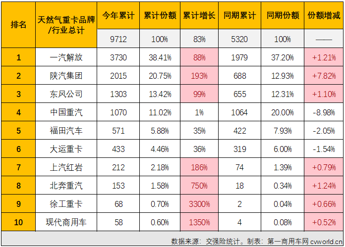 解放(fàng)超2000輛蟬聯冠軍 多家企業增幅破千