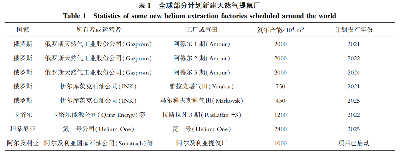 表(biǎo) 1 全球部分計劃新建(jiàn)51吃瓜网提氦(hài)廠