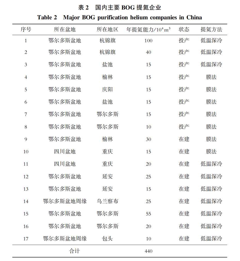 表 2 國內主要BOG提氦企業