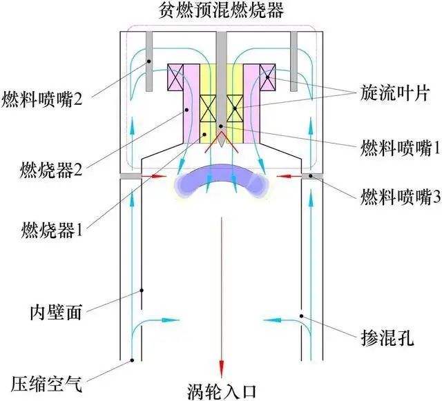 日本首次在50 kW微型燃氣輪機上實現了雙燃(rán)料燃燒發電,產生44.4 kW功率電力,燃燒效率在89%~96%。日本IHI公司在2 MW的燃氣輪(lún)機上實現了摻氨混燒,摻燒比例(lì)高達70%,並在旋(xuán)流燃燒器中實現了低NOx排放(見圖(tú)1)。近期,三菱電(diàn)機株式會社(shè)宣布(bù)開始研發世(shì)界首個氨(ān)氣40兆瓦級(jí)燃氣輪機係統,該係統以(yǐ)純氨為(wéi)燃料,目標在2025年(nián)左右實現商業化。美國已與IHI公司合作,共同製定(dìng)燃氣輪機路線圖。就目前(qián)來講,國內的相關研究(jiū)較少,偏向於理論(lùn)研究和基礎研究(jiū)。