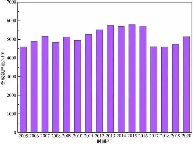 圖4 我國合成氨產(chǎn)量(2005—2020年(nián))
