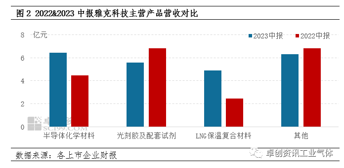 昊華(huá)科技從事的業務主要涉及氟(fú)化工、電子化學品、高端製造化工材料及(jí)工程技術服(fú)務等行業。2023年上半年昊華(huá)科技主要經營指標跑贏行(háng)業大勢,營收、淨利潤實現雙雙增長。該公司報告期實現營收在43.04億元,同比增加(jiā)6.5%;歸屬於(yú)上市公司股東的淨利潤為5.03億元,同比(bǐ)增加1.94%。具體到(dào)產品來看,仍然是以高端(duān)製(zhì)造化工材料為主,上半(bàn)年營收占比達到38.67%,與2022年中期業績基(jī)本相當。高端氟材料排名第二,從增速來看,受氟化工行業弱(ruò)勢影(yǐng)響,市場(chǎng)價格下降,從而影響了增(zēng)速水平。工程技術(shù)服務板塊保持良好態勢(shì),2023年(nián)中期營收同比增長35%。報告期內(nèi),昊華氣(qì)體“有機含氟電子氣體(tǐ)項(xiàng)目”進展順(shùn)利(lì),打通數種含氟電子氣(qì)體的合(hé)成和精製提純(chún)工藝研(yán)究,完成中試裝置安(ān)裝。雅克科技主要致力於電子半導體材料,深冷(lěng)複合材料以及塑料助劑材料研發和生產。2023年上半(bàn)年整體經營狀況良好,營收、淨利潤穩步增(zēng)長,實現營收23.23億元,同比增長12.82%;實現(xiàn)歸母(mǔ)淨利潤3.41 億元,同比增長21.3%。2023年上半年雅克科技的營業收入構成為:半導體化學材料占比27.73%,光刻(kè)膠及配套試劑占比24.06%,LNG保溫複合材料占比(bǐ)21%。報告期內,大力(lì)發展電子材料和LNG保溫絕熱板材業務,營收同期對比均實現增長。電子(zǐ)材料業務是發展重點,依托前驅體材料產(chǎn)品種類豐富的優勢(shì),2023年上半年,前驅體業務經營業績保持了相對穩定(dìng)增長。隨著訂單(dān)量增加(jiā),板(bǎn)材業務經(jīng)營(yíng)良好,上半年LNG保溫(wēn)複合材料營收實現翻倍增長。正帆(fān)科技多年來服務於中國集成電路、平(píng)板顯示、半導體照明、太陽能光伏(fú)、光纖製造以及生物製藥產業,向客戶提(tí)供製(zhì)程關鍵係統綜合解決方案。從營收和利潤方麵看,公司總體(tǐ)財務狀況良好(hǎo),上(shàng)半年(nián)實現營業收入13.44億元,同比增長42.55%,淨利潤1.5億元,同(tóng)比增長183.54%。報告期(qī)內(nèi),公司堅定執行發展戰略,使得業務滲透(tòu)率快速提(tí)升,營收、利潤等經(jīng)營業績再創曆史新高。報告期內(nèi),新簽合同同比增長78.6%,來自於半導體行業和光伏行業的新簽合同(tóng)分別同比增長77%和179%,獲得了超過行業平均水平的高增長。南(nán)大光(guāng)電主要(yào)從事先進電子材料生產、研發和銷售的高新技術企業,產品廣泛應用(yòng)於集成電路、平板顯示、LED、第三代半導體、光伏和半導體激光器的生(shēng)產製造。2023年上半年實現營收8.26億元,同比(bǐ)減少2.46%;歸屬於上市公司股東的淨利潤約1.52億元,同比增加5.43%。麵對下遊市場不景氣的挑戰,報告期內公司開拓創新,聚焦主業。一季度扭轉了去年(nián)第四季度業績下跌的趨勢,二季度實現營業收入環比增長7.48%,實現歸屬於上市公司股東的淨利潤環比增長 3.06%。中船特氣主要從事電子特種氣(qì)體及三氟甲磺酸係列(liè)產(chǎn)品的研發、生(shēng)產和銷售,產品主要應用於集成電路、顯示麵板(bǎn)等半導體製造工藝。受半導體周期下行、終端市(shì)場需求(qiú)疲軟等影響,2023年(nián)上半年公司(sī)營業收入及淨利潤等指標同比下(xià)降(jiàng),營收約8億(yì)元;歸屬於上市公司股東的淨利潤約(yuē)1.72億元。矽烷科技主要從事氫矽材料產品研發、生產、銷售和技術(shù)服務,產品(pǐn)包括高(gāo)純矽烷、電子級(jí)矽烷氣與氫氣。2023年上半年業績表(biǎo)現(xiàn)尚可,營收、淨利潤實現雙增長,報告期內公司實現營(yíng)業總收入5.52億元,同比增長8.77%,歸母淨利潤1.38億元,同比增長37.25%,主要原因為報告期內矽烷產銷量及銷售價格較上期增加所致,營業利潤相應增加而導致(zhì)的淨利潤增加。另外,矽烷科技擴產3500噸矽烷三期項目已(yǐ)經於2022年三季度(dù)啟動,預計(jì)2023年底投入試生產。展望下半年,經濟運行延(yán)續(xù)恢複態勢,下遊高端製造化工材料、電子以及氟化工等行(háng)業有望繼續修複,但階段性穩增長壓力和需求不足的(de)困難仍(réng)然存在。麵對經營環境(jìng),未(wèi)來各上市企業將繼續堅定自己的戰(zhàn)略方針,一方麵聚焦主業,整合優質業務(wù)和資產,充分發揮協同效(xiào)應;另一(yī)方麵,深化技(jì)術研發,提升公司核心競爭力;另外,高效(xiào)統籌推進項(xiàng)目建設,拓展新市場的同時,增加自身(shēn)的競爭力。整體來看,下半年電子特氣主要上市公司業績(jì)有望繼續改善。