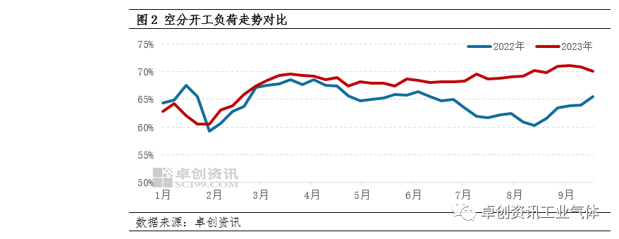 進(jìn)入三季度,空分裝置多正常運行,疊加部分(fèn)新裝置投產,液氮市場(chǎng)供應較足;終端需求表(biǎo)現弱勢,部分臨時性采購(gòu)僅(jǐn)對個別地區稍有帶(dài)動。供強需弱態勢下,價格難尋動力,整體低於去年同期水平。據卓創資訊數據監測,截至9月25日,中國液氮均價至535.74元/噸,較季初(chū)價格跌2.03%,較去年同期跌13.47%。通過(guò)圖1可以看出,進入三季度,液氮價格走勢放緩,整體震蕩下行,同比價差較一、二季度明顯放大。具體來看(kàn),7-8月份北方市場(chǎng)表現稍好,部分地區主力企業檢修,市場供應減少帶動價格上漲,南方地區氛圍清淡,價格多有下調。而去年同期市場供(gòng)應收緊,疊加部分廠商檢(jiǎn)修期(qī)間采購較多,供緊需多態(tài)勢下液(yè)氮價格震蕩走高,與今年價差逐步(bù)拉大,價差最大值出現在8月(yuè)下(xià)旬,為267.49元/噸。9月以來,月(yuè)上旬市場弱勢延續,價格(gé)下行為主;月中旬開始,部分下遊開始節前補(bǔ)庫(kù),疊加局部(bù)廠商裝置檢修、試車等對外采購(gòu),市場交投氛(fēn)圍(wéi)好轉,價(jià)格止跌回漲。據卓創資訊數據監測,截至9月25日,中國液氮均價至535.74元/噸,與去年同期價差收(shōu)縮至83.4元/噸。通過圖2可以看出,三季度空分開工負荷高位偏強震蕩,走勢大致與去年同期相反。主(zhǔ)要原因在於,去年7-8月份受高溫天氣影響,空分裝置檢修及故障發生率增加,開工負荷震蕩下行,供應減少對液氮價格產生帶動;9月(yuè)隨著(zhe)天氣轉涼,空分開工負荷逐步回升,液氮市場供應恢(huī)複。而今(jīn)年7、8月南方高溫天氣不多,配套鋼鐵行業開工較足,化工行業相對一般,空分裝置開工負荷率小幅上移;9月下旬以來,空(kōng)分裝置檢修增多,帶動空分開工負荷窄幅下(xià)行,局部供應壓力緩解。另(lìng)一方麵,二季(jì)度末、三季度初溧陽川空、萊蕪盈德等大型(xíng)空分(fèn)裝置的(de)投產,亦給液氮(dàn)市場供給端增加壓力。綜合來(lái)看,三(sān)季(jì)度液氮市(shì)場供應(yīng)較足,僅9月下旬稍有好轉,整體對價格缺乏帶動。據卓創資訊數據監測(cè),截至9月21日,中國空分開工負荷(hé)率(lǜ)至70.11%,較前一周降0.77個百分點,較去年同期增加4.6個百分點;三季度液氮產量預計可達312萬噸,環比增加2萬噸左右,同比增加33萬噸左(zuǒ)右(yòu)。三(sān)季(jì)度液氮市場主要下遊行業表現不(bú)一。其中,國內化工行業開工先升後降,整體仍處在年內相對低位(wèi)水平。截止到9月21日當周,卓創資訊重點(diǎn)監測的(de)41個產品的平均開工負荷率為(wéi)69.1%。一方麵(miàn)部分化工企業裝置檢修期間外采液氮,對區域液氮價格產生臨時性帶動;另一方麵(miàn)盈利狀(zhuàng)況不佳也造成部分細分行業開工負荷下降,對液氮(dàn)需求難有支(zhī)撐。電子行業不溫不火,據國家統計局數據顯示,7、8月份集成電路產量分別為291.5和312.3億塊,與上半(bàn)年數據出入不大,加之近年來部分電子企業自配製氮機,外采液氮需(xū)求減少,對液氮價格帶動不大。綜合來看,三季度液(yè)氮市場主要下遊需求(qiú)支撐有限,批量采購多發生在廠商檢修(xiū)、新(xīn)裝(zhuāng)置試車等節點,僅對區域液氮價格產生臨時性帶(dài)動。展望(wàng)四季度,華北、華東、華中(zhōng)等地區仍有新裝置計劃投(tóu)產,液(yè)氮產能(néng)預期繼(jì)續增加,液氮市場供應或整體較足(zú)。需求端,宏觀環境繼續(xù)回暖,加之國內汽車(chē)、電子、房地產(chǎn)等行業出台的係列刺激消費政策,終端需求有望進一步修複;同時考慮隨著冬季到來,北方加工製造行業需求下滑,液氮(dàn)市場需求或謹(jǐn)慎樂觀(guān)。綜(zōng)合來(lái)看,四季度液(yè)氮市場供應(yīng)或相(xiàng)對充足,需求端表現不一,市場整體或難有較大改善,價格走勢或將表現為先漲後跌。