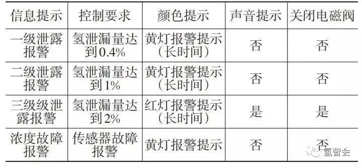 表2 氫泄露報警控(kòng)製措施(shī)