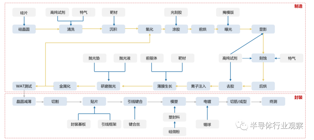 晶圓製造材料在半導體製造(zào)流程中的應用環節