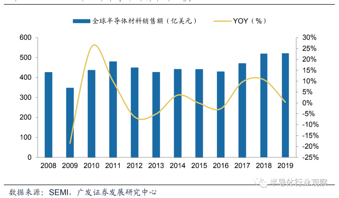 2008-2019年全球半導體材料市場規模