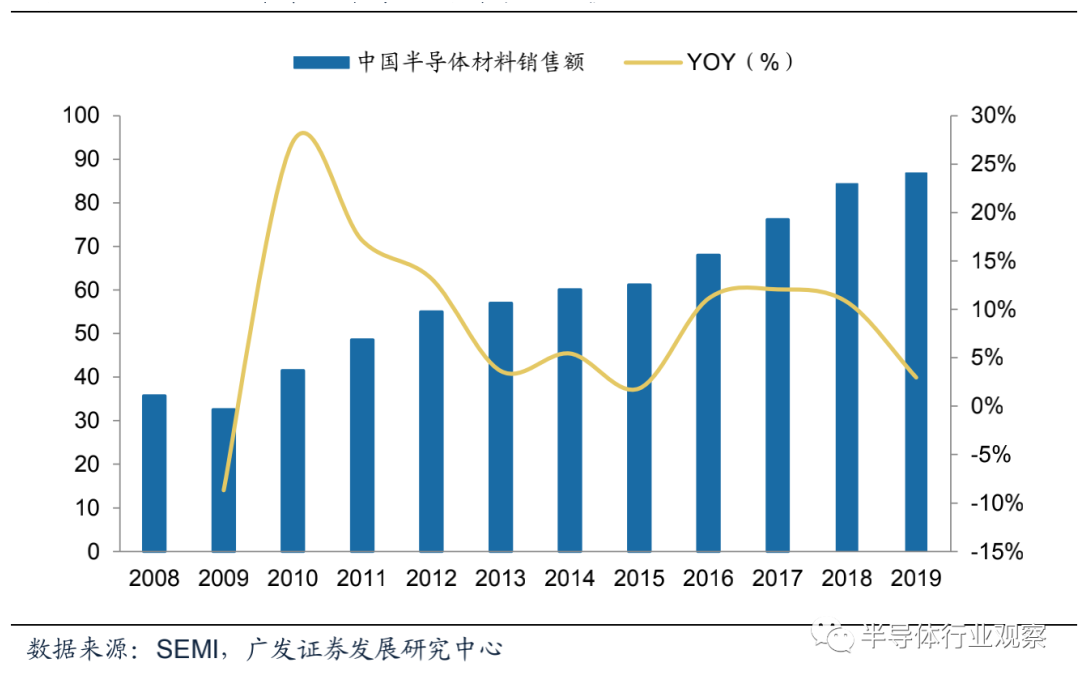 而在過去幾年,中國半導體材(cái)料(liào)市場穩步增長。