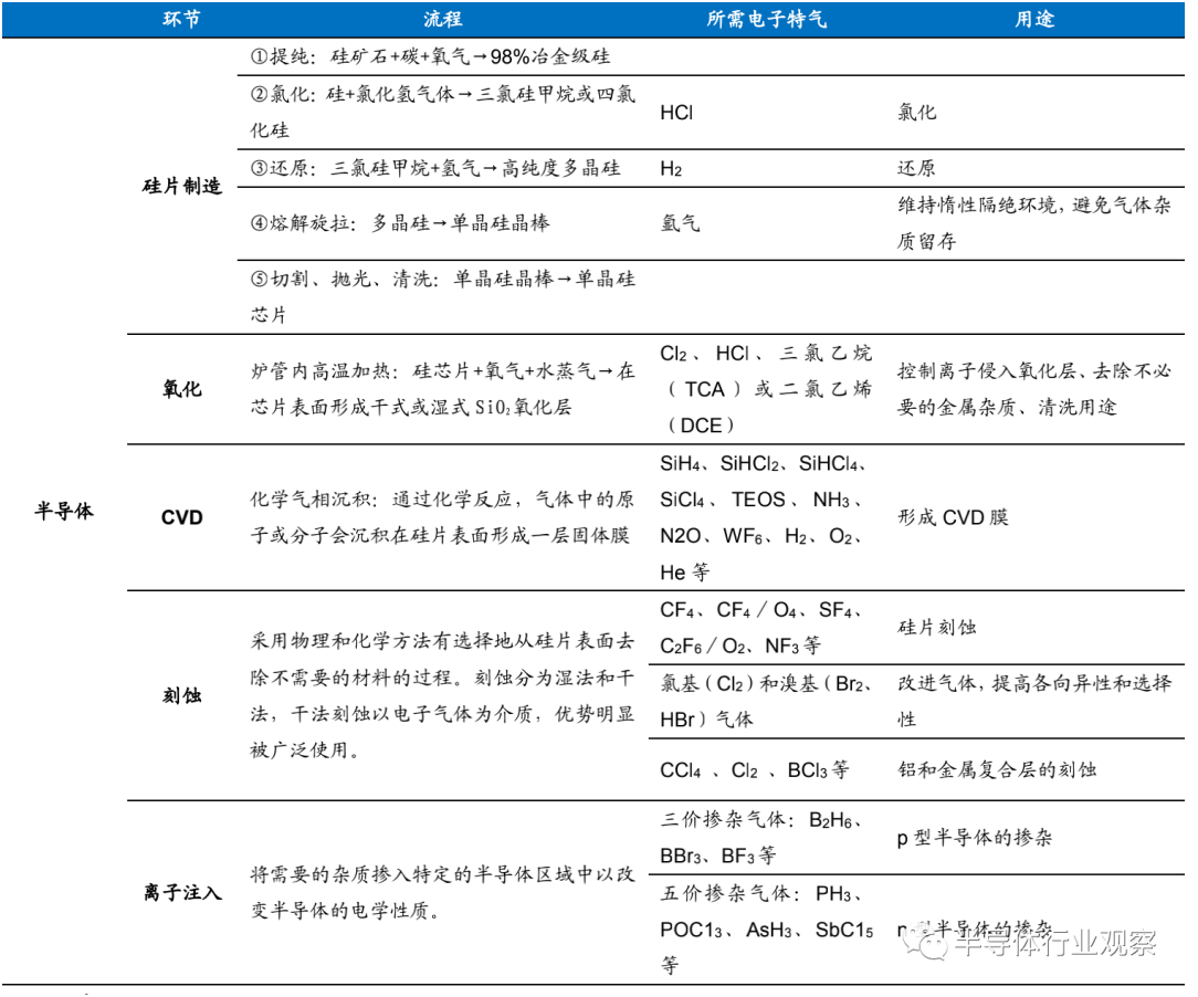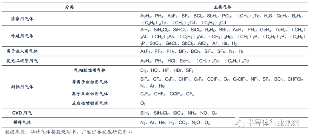 電子特種氣體種類繁多,是電子工業重要的原材料之一。電子特氣是(shì)指用於半導體(tǐ)及相關電子產品生產的特種氣體,其按不同的(de)應用(yòng)途徑可以分為摻雜用氣體、外延用氣體、離子(zǐ)注入氣、發光二極管用氣、刻蝕用氣體、化學氣(qì)相沉積氣和平衡氣等。在半導體工業中應用的有110餘種單元特種氣體,其中(zhōng)常(cháng)用的有超過30種(zhǒng)。