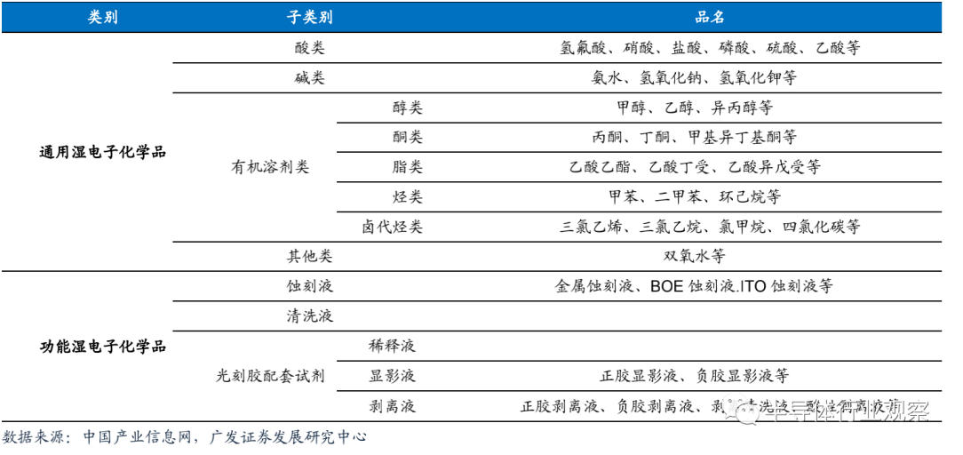 高純濕電子化學品(pǐn):種類繁多,應用(yòng)廣泛