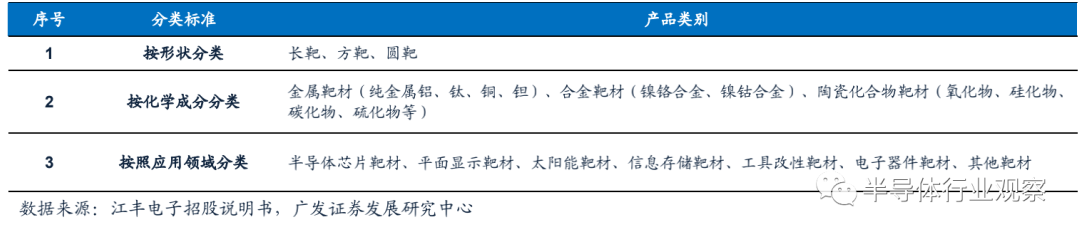 濺射靶材分類
