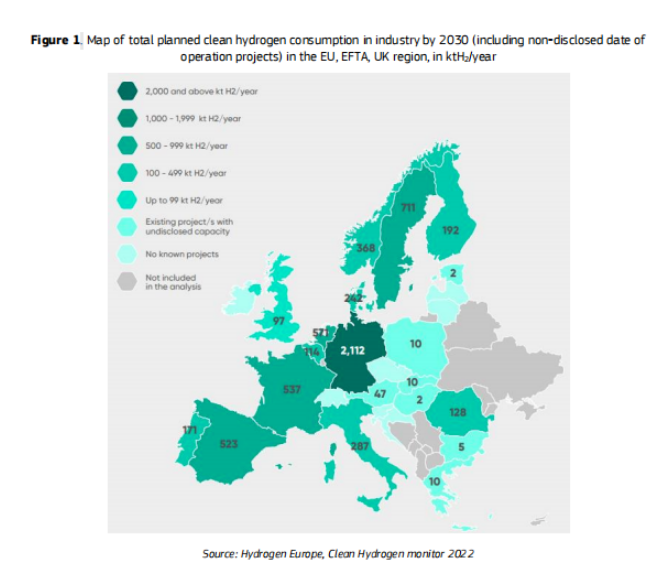 圖(tú)|歐(ōu)盟、歐洲自(zì)由貿易(yì)聯盟、英國地區工業(yè)計劃清潔氫(qīng)消費總量圖